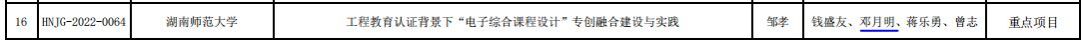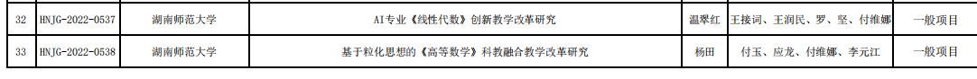 其中,我院李强主持、刘宏、马华、蔡美玲、张楚才老师参与的项目:新工科背景下软件工程国家一流本科专业创新人才培养探索;温翠红主持、王润民、罗坚、付维娜老师等参与的项目:AI专业《线性代数》创新教学改革研究:杨田主持、付玉、付维娜等老师参与的项目:基于粒化思想的《高等数学》科教融合教学改革研究,三个项目被立项为2022年湖南省普通高等学校教学改革研究一般项目。我院邓月明老师参与的一项项目:工程教育认证背景下“电子综合课程设计”专创融合建设与实践被立项为重点项目。