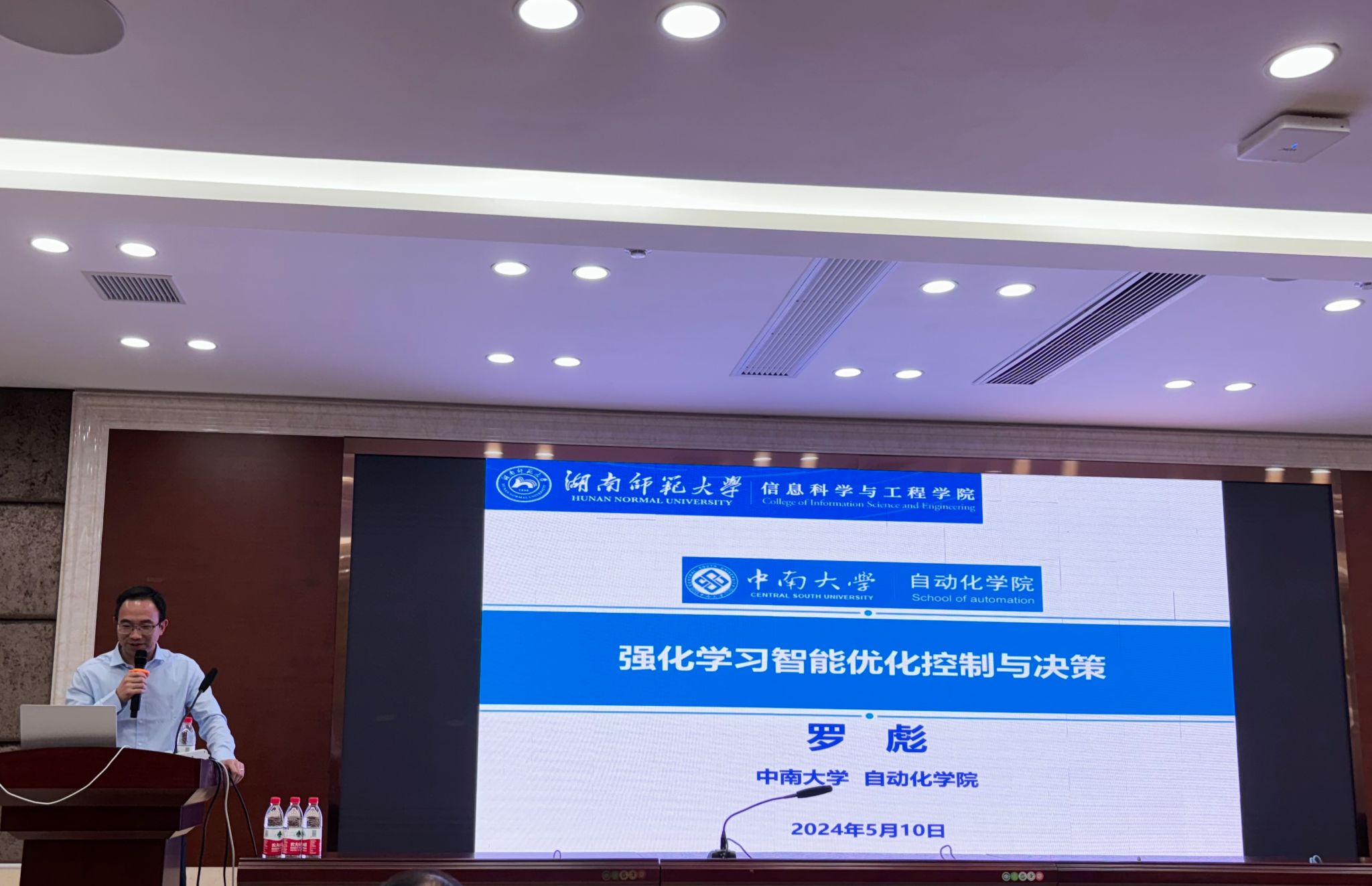 (通讯员:史晓龙 谢东霖)湖南师范大学信息科学与工程学院于5月10日上午举行了三场激动人心的学术报告。首先是由卡塔尔德州农工大学的黄廷文教授主讲的题为“Several Optimization Problems in Smart Grid”的学术报告,随后是由湖南大学的郭振远教授主讲的题为“资源配置问题的分布式优化研究”的学术报告,最后是由中南大学自动化学院的罗彪教授主讲的题为“深度强化学习智能优化控制与决策”的学术报告。此次报告会是由信息科学与工程学院的副院长肖林主持,科研办组织召开,2022级和2023级研究生及相关老师参加。