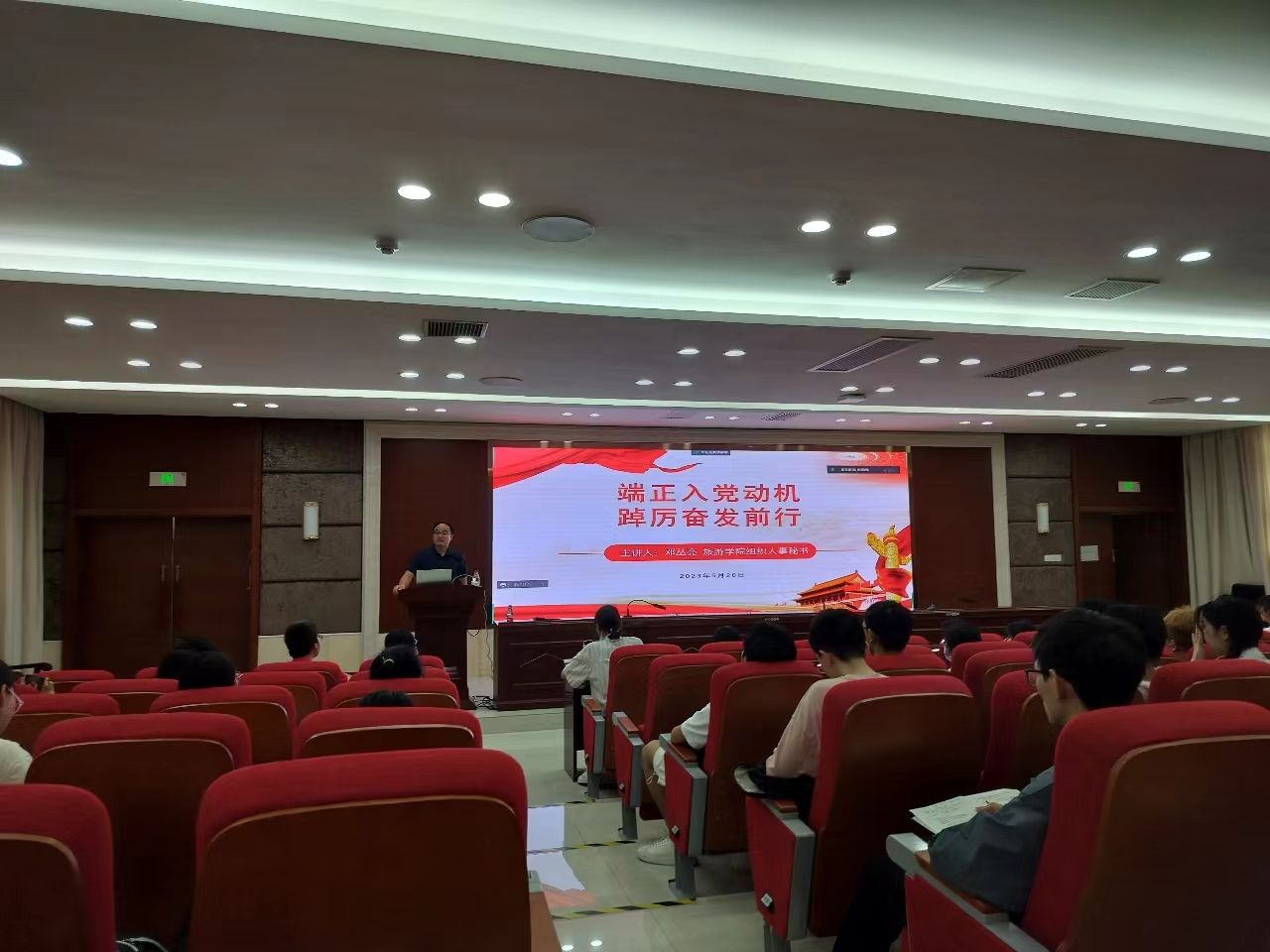 (通讯员:叶芝娜)2023年5月20日,我院邀请旅游学院组织人事秘书邓丛亮老师为第74期入党积极分子开展主题为“端正入党动机,以实际行动争取早日入党”的专题党课。