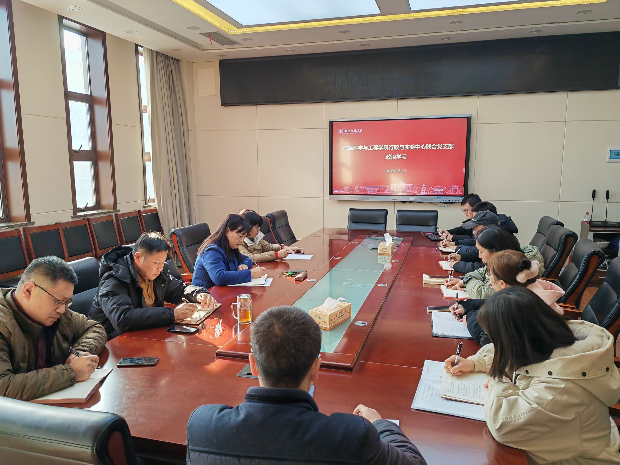 (通讯员 刘慧)12月26日下午,信息科学与工程学院行政与实验中心联合支部在中和楼338会议室开展合并后第一次政治理论学习,并布置近期工作,此次学习由联合支部书记瞿绍军主持。