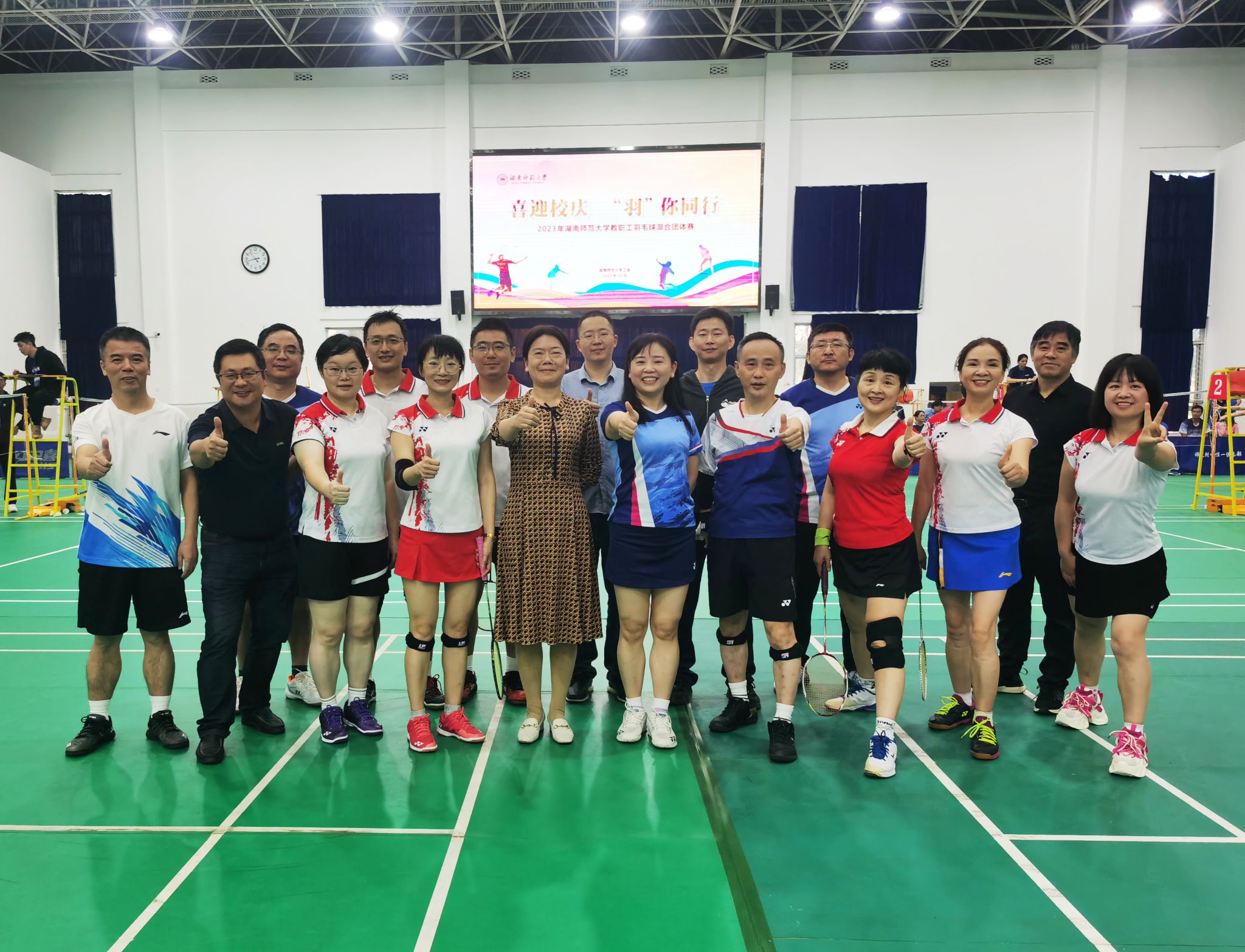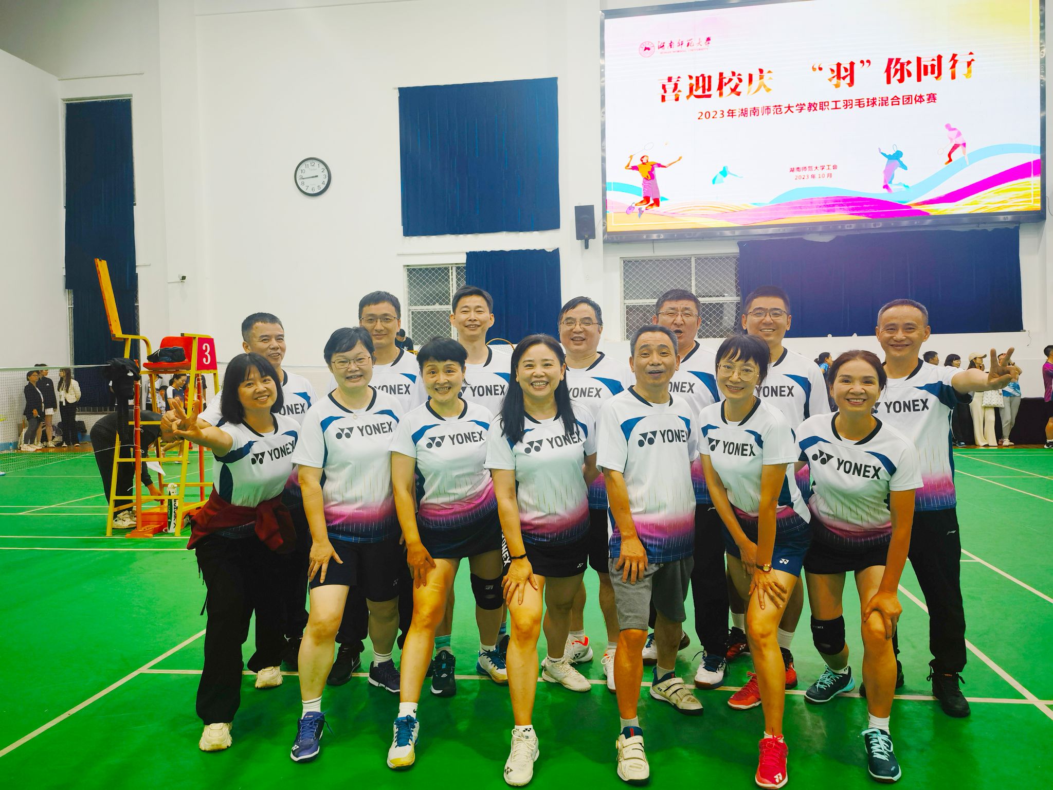 【通讯员:官理】喜迎校庆,“羽”你同行,10月13-15日,2023年湖南师范大学教职工羽毛球混合团体赛在师大附中体育馆举行,全校各部门工会,包括省人医代表队、广东校友队共32支代表队参加了比赛。