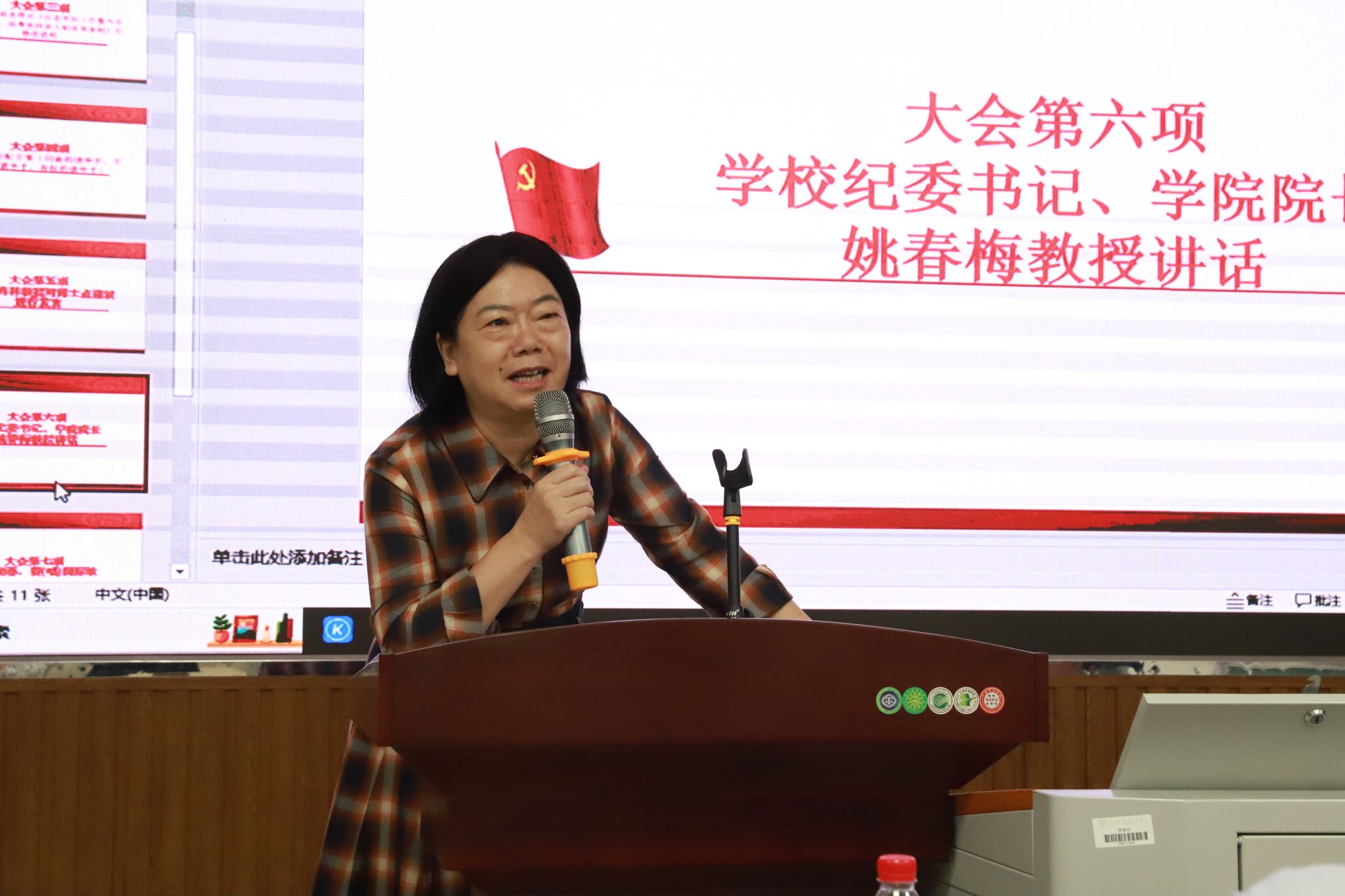学校纪委书记、学院院长姚春梅教授也在会上发表了重要讲话。她首先对教代会的成功召开表示祝贺,并对全体教职工为学院发展所做出的贡献表示衷心的感谢。姚教授还就学院发展规划等方面提出了具体要求和希望,鼓励大家继续发扬团结协作、勇攀高峰的精神,为学校的发展贡献自己的力量。
