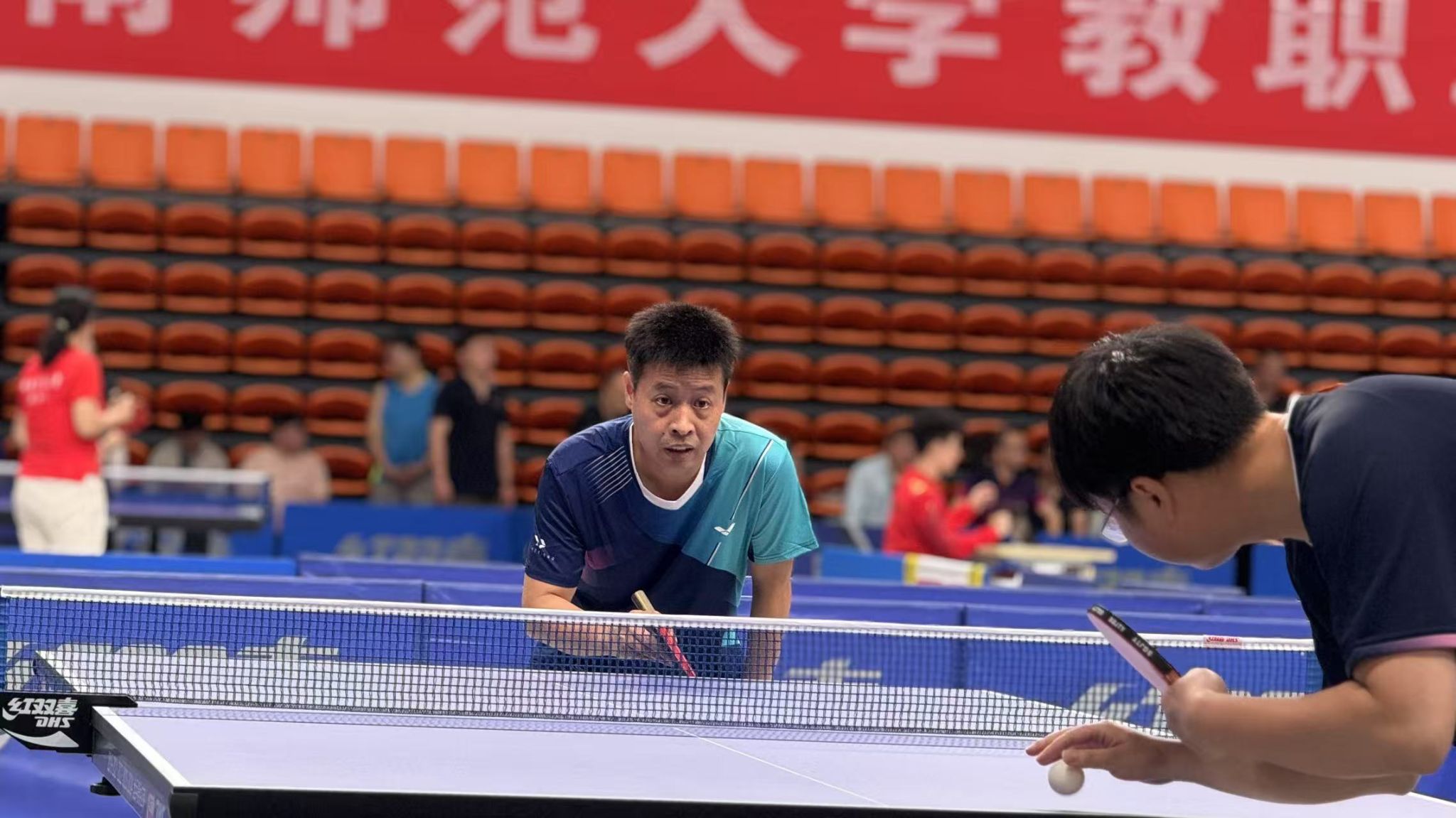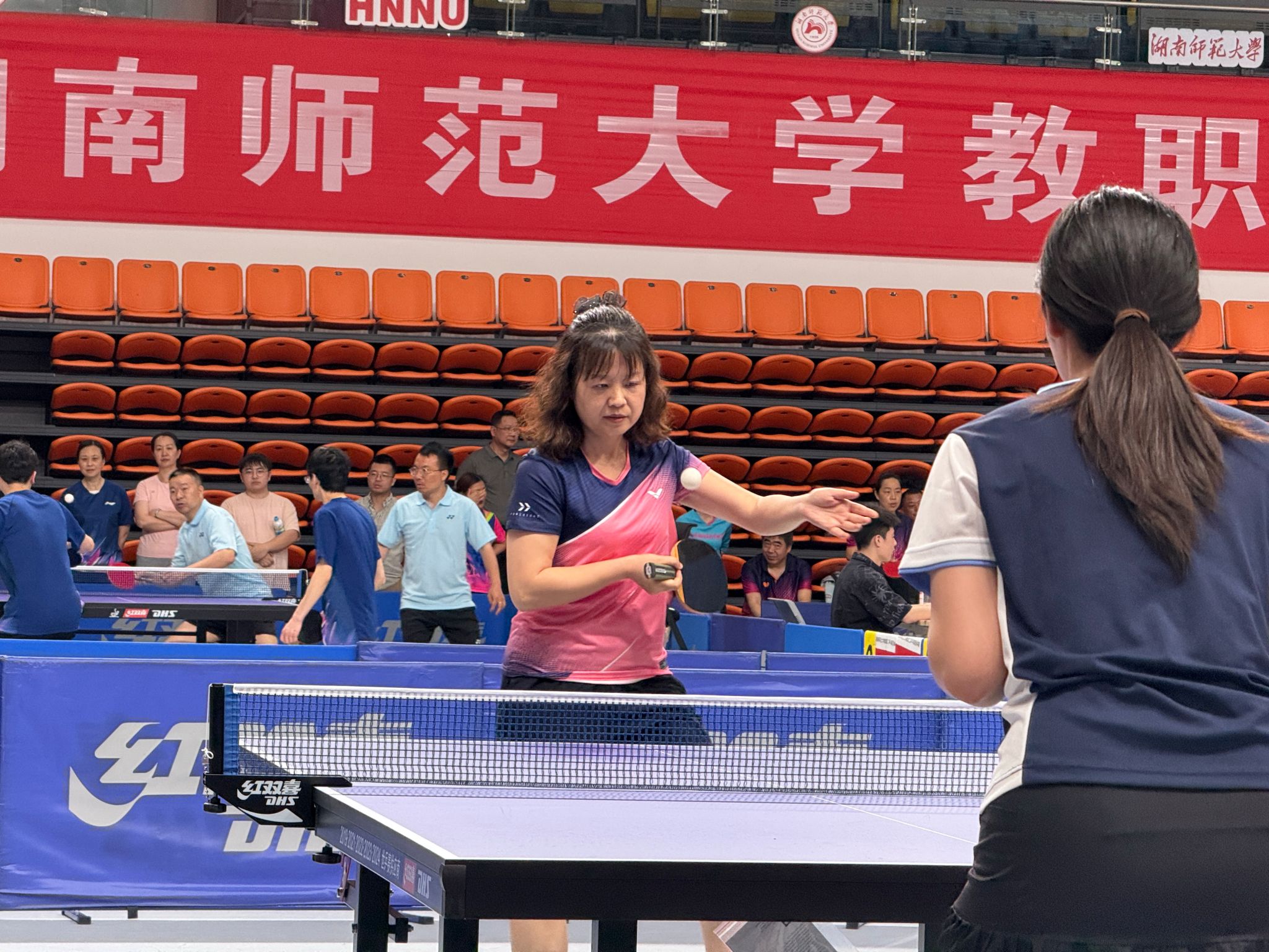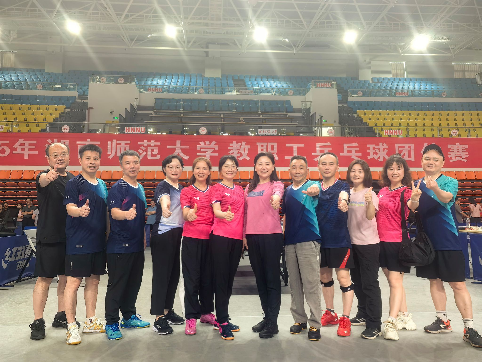 2025年5月9号,湖南师范大学2025年教职工乒乓球混合团体赛在江湾体育馆落下帷幕,我院乒乓球队团结协作、奋勇拼搏,最终斩获全校第四名的优异成绩,创下参赛以来最佳战绩,充分展现了学院运动健儿昂扬向上的精神风貌和出色的竞技水平。院党委书记李常枫亲临现场为乒乓球队加油助威,给予大家精神鼓励。