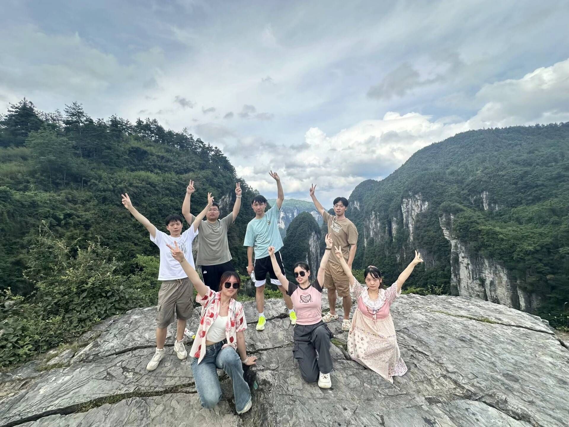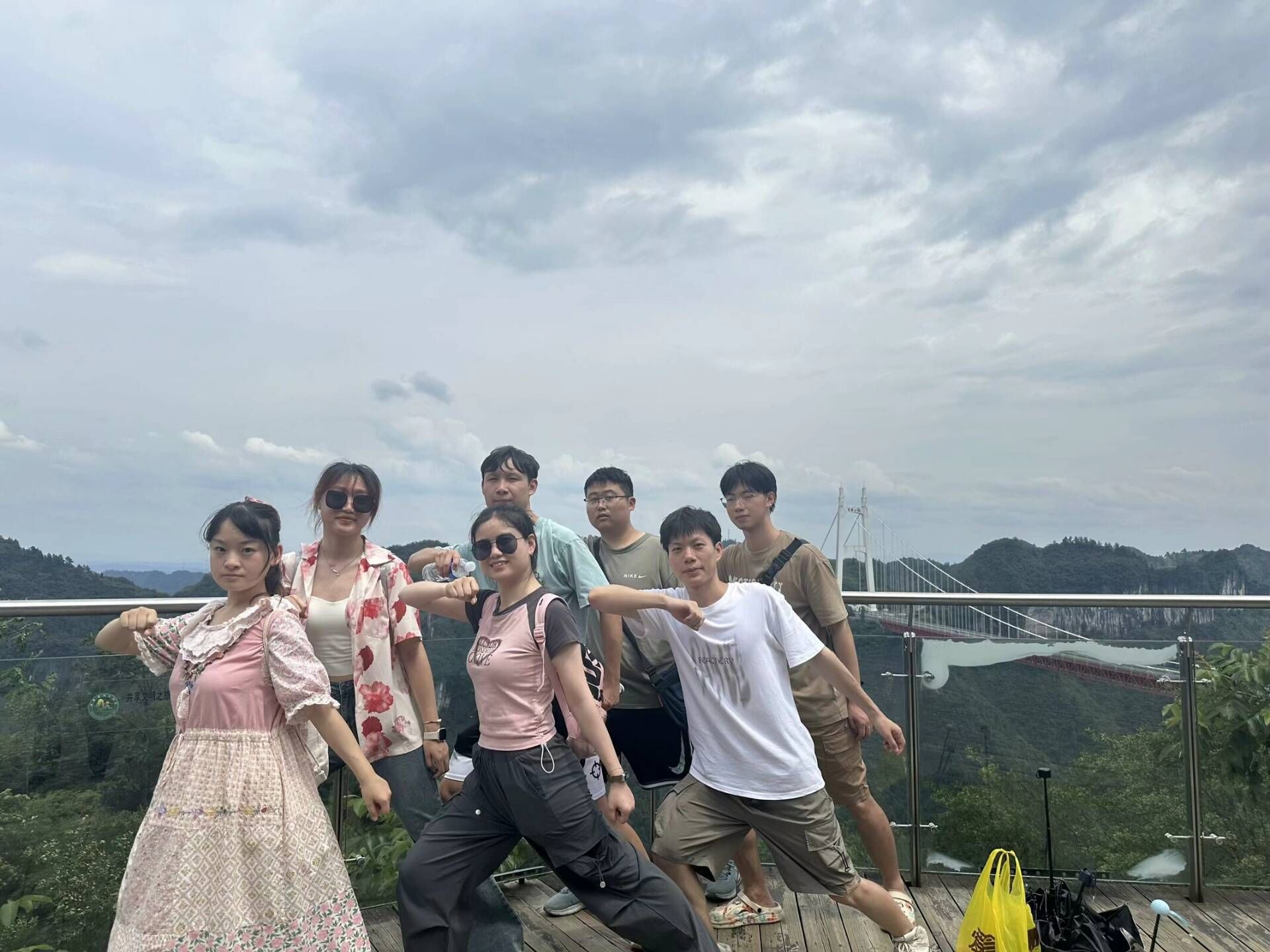 全体队员在矮寨大桥合影留恋