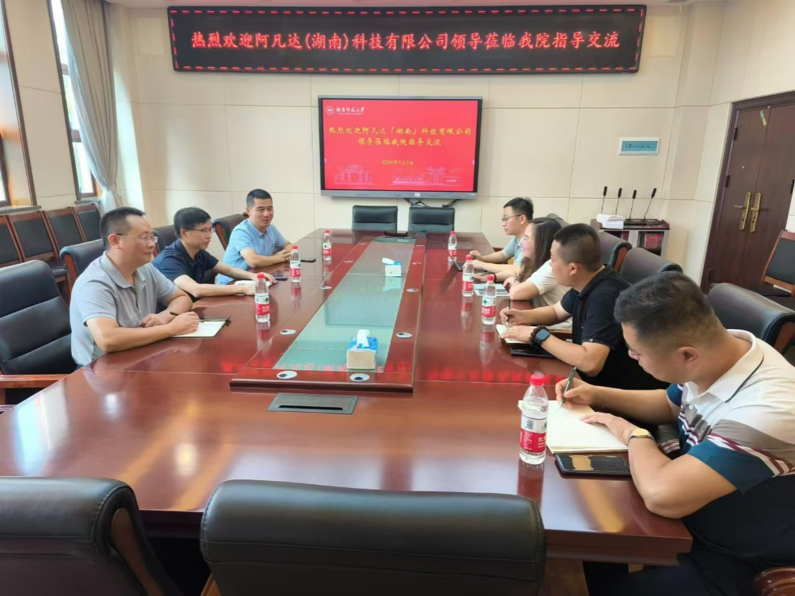 (通讯员 王润民 马华) 9月5日上午,阿凡达(湖南)科技有限公司总裁戴茜婧、产品总监王卓然、大客户经理吕杰、史凤彪等公司领导一行到访我院,双方在中和楼338会议室展开了深入交流。我院副院长刘相滨,软件工程系主任马华,副主任蔡美玲,人工智能系主任王润民等出席了会议。