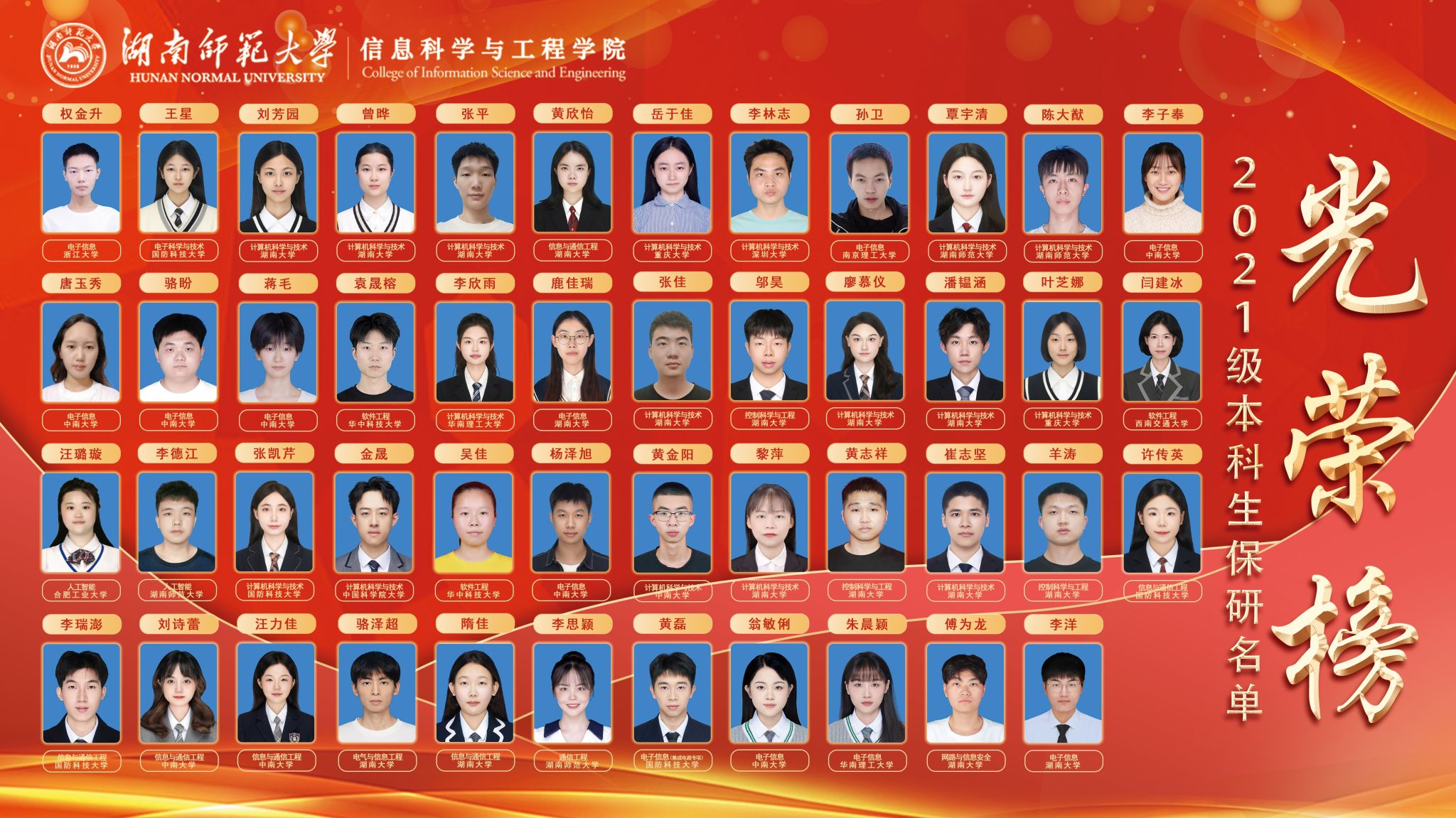 近期,在本院师生的共同努力下,2025年度推荐免试研究生工作顺利结束,我院学子再度传来捷报,以卓越的表现续写了辉煌篇章。本年度推免工作中,我院有47位本科生荣获推荐免试资格,并被各高校不同专业录取。现将学生推免院校信息公布如下: