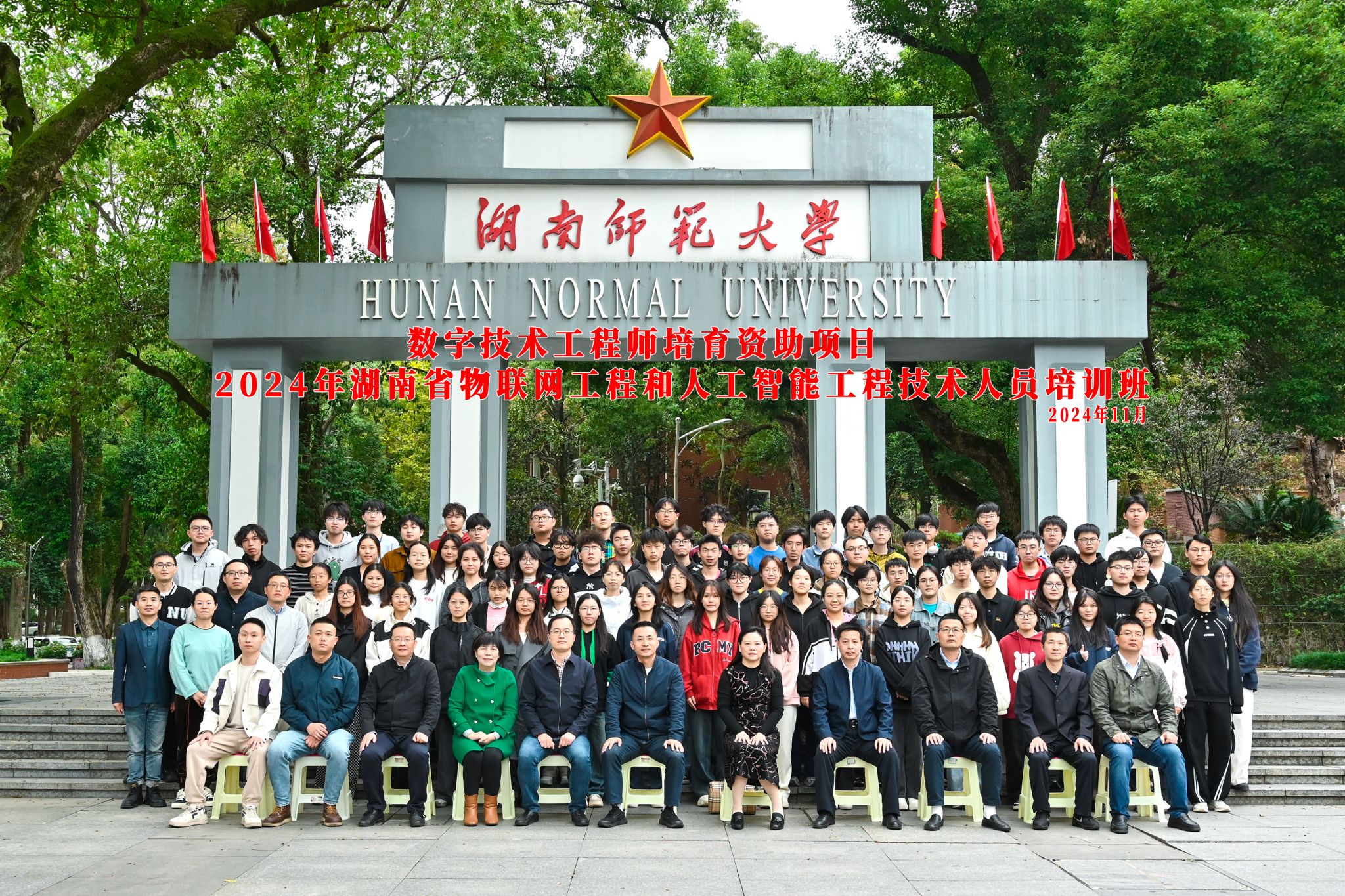 本次数字技术工程师培训由湖南省人力资源和社会保障厅全额资助,分物联网工程和人工智能工程两个专业方向,主要采取线下教学与线上学习两种方式。共70余名2021级相关专业的本科生参加,培训时间为期16天。