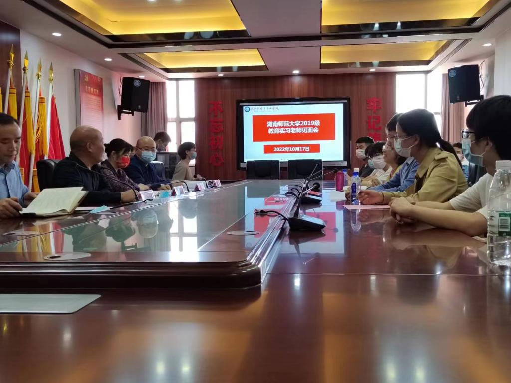 (通讯员 付玉 袁婷婷)2022年10月17日上午8:00,我院19级计算机师范专业7名学生与工设院应用电子师范专业20名学生一道,在付玉教授及工设院张甫、谢婷老师的共同带领下,乘坐学校大巴车启程前往长沙市电子工业学校(以下简称实习学校)进行为期8周的教育实习。上午10点,实习学校在求实楼党建活动室举行教育实习见面会,会议由实习学校教务科主任任飞跃主持,实习学校党委书记周树明、教学副校长邓玉蓉、学生科科长胡坚、教务科副科长吉勇祥,以及高一年级部部长王秀红、高二年级部部长荣红林出席了会议,师大全体实习生和带队老师参加了会议。