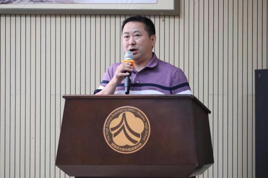 最后,李勇副校长总结发言。他代表师大梅溪湖中学热烈欢迎同学们的到来,表示实习工作的开展使双方都获益良多,希望能进一步加强沟通与协作,共同取得进步。同时,他鼓励各位实习老师向以李新国为代表的宝藏老师们多多学习,提倡在已有教学模式上进行发展创新。他期待大家通过此次实习加强专业能力,提高教学管理水平,并祝愿大家在师大附中梅溪湖中学开启教师生涯丰富多彩的第一页!