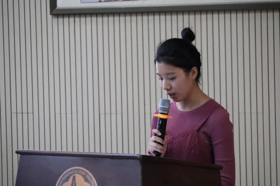 首先,方煦对六个实习队伍的到来表示热烈的欢迎,宣布中期汇报开始。接着,在各实习队汇报阶段,我院师大梅溪湖教育实习队队长宋卓彬分别从校园生活、教学实习和教育实习三个方面对实习队自入校以来的工作进行了阶段性总结和汇报。她说,优美的校园环境,优良的办公场地设施,学校领导和老师的关心与指导让实习老师充满干劲;在这段时间里,三个备课小组经过听课备课、反复磨课后逐步走上讲台;除学校监控系统、录播系统的使用学习以及机房的日常维护外,还协助各处室的日常管理工作。