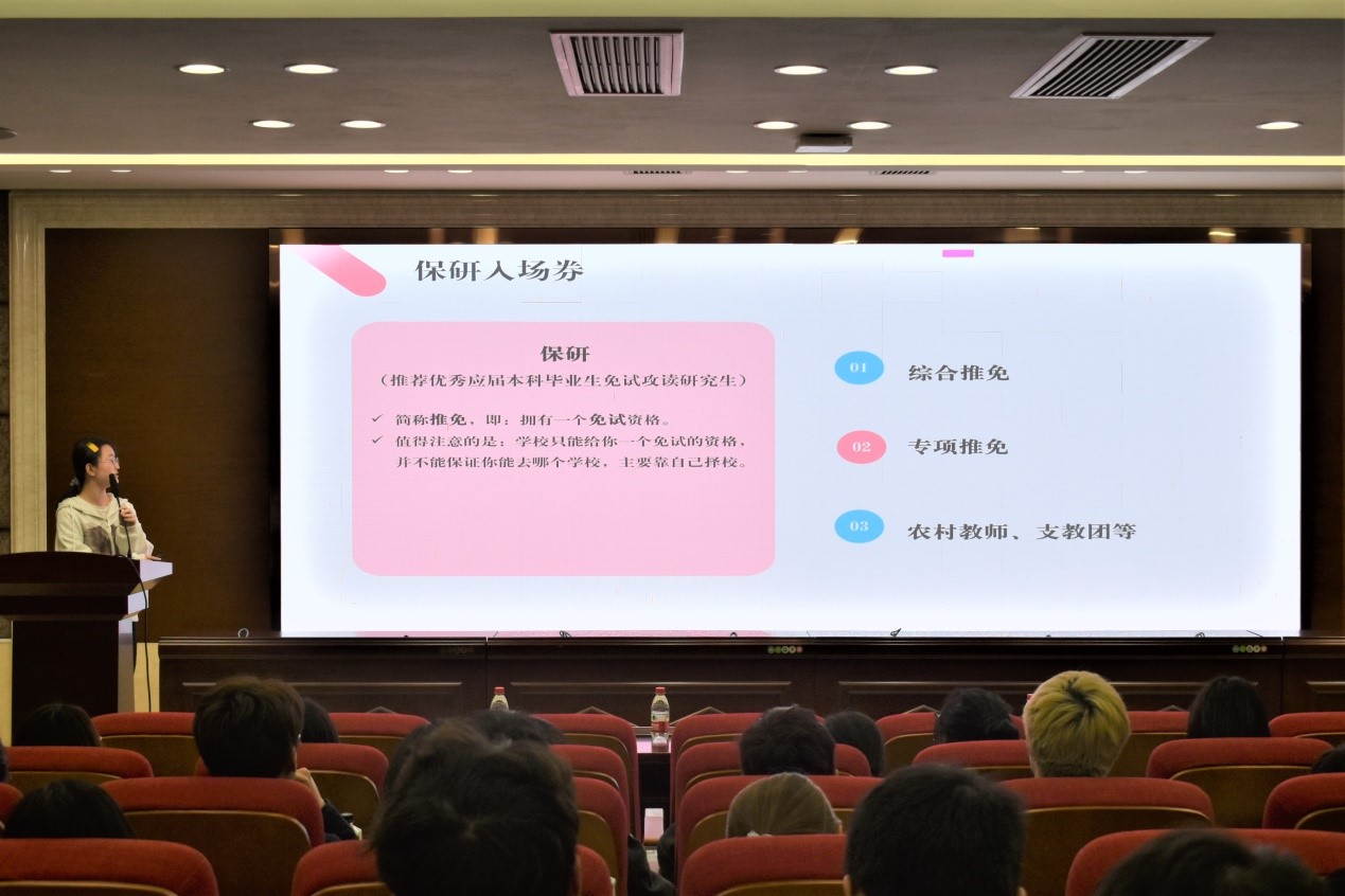 祝月从保研入场券、保研流程、准备内容等方面分享了自己的保研经验,她建议同学们积极主动地获取有关夏令营和预推免的信息动态,提前做好充足的准备。