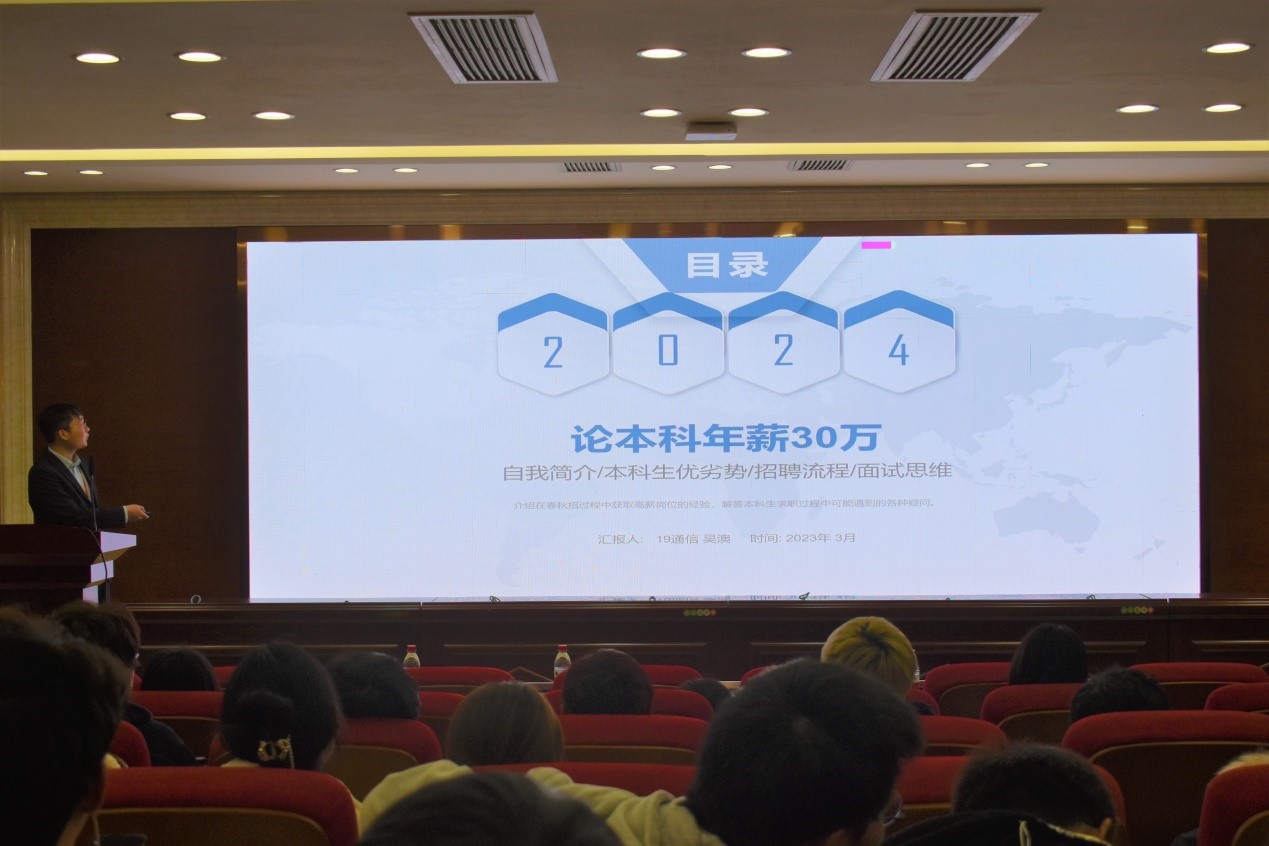 (通讯员 姚旭灿)为帮助2020级人工智能专业学生提前规划学业,3月30日晚,我院人工智能系于中和楼342报告厅举办2020级人工智能学风建设大会暨考研就业交流会。2019级计算机科学与技术(创新班)祝月、郭鹏腾、张毓炜、2019级通信工程班吴澳受邀分别对保研、考研、申请港澳及境外高校研究生、就业进行经验分享。信息院副院长刘相滨、学工办主任刘植出席此次会议,人工智能系主任王润民主持会议。