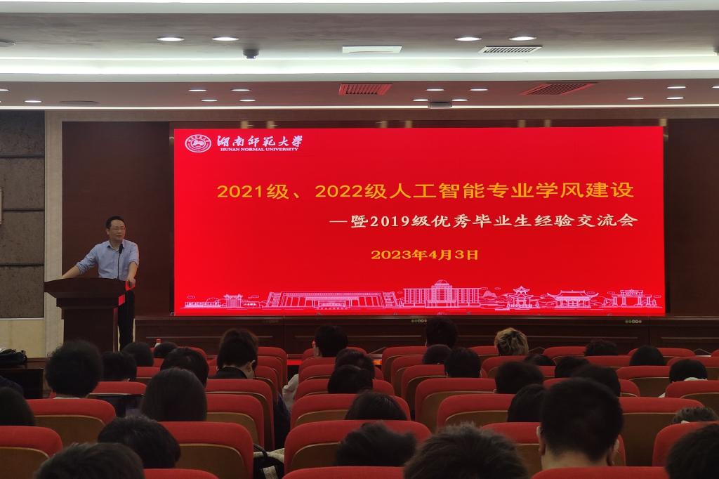 (通讯员 朱涛) 我院人工智能系近期开展了一系列学风建设活动,通过优秀学生事迹报告,助推各年级学生端正学习态度、进一步明确发展方向。在继3月30日成功组织2020级人工智能专业学生召开学风建设大会之后,该系在4月3日晚于中和楼342报告厅举办2021级、2022级人工智能学风建设大会暨2019级优秀毕业生经验交流会。2019级计算机科学与技术(创新班)胡彬、郭鹏腾、张毓炜、宋星东、2019级通信工程班吴澳受邀分别对保研、考研、留学及就业进行经验分享。党委副书记周劲松、信息院副院长刘相滨、人工智能系副主任江沸菠出席此次会议,人工智能系主任王润民主持会议。