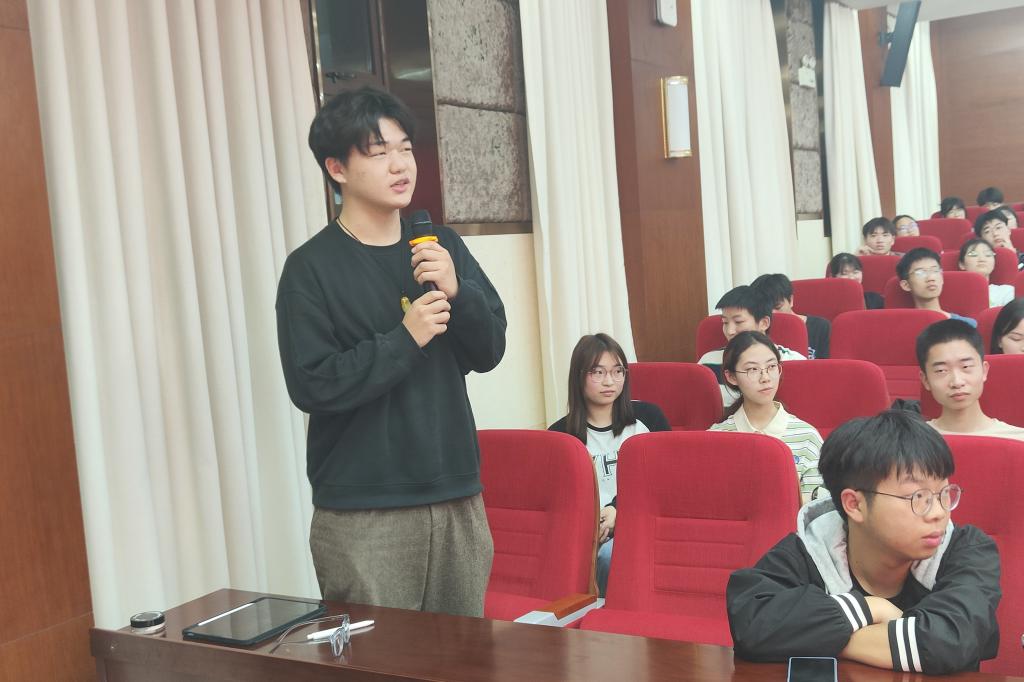 随后,胡彬结合自身保研经历从保研的政策、流程、准备内容及择师择校等方面详细介绍了保研的有关事宜,她鼓励同学们积极关注高校夏令营及专业推免动态,提前做好相关准备。郭鹏腾介绍了自身本科学业情况,分享了考研复习时间线并推荐了各学科复习资料,提醒大家不要忽视本科课程成绩及实践经历,提高自驱力与自律能力,针对研究生备考过程中所出现的问题提供了宝贵的经验。张毓炜根据自己成功申请香港大学人工智能专业研究生的经验,从前景规划、网申攻略、笔面准备、后续工作四个方面进行了分享。他详细分析了申请港澳及境外研究生与国内研究生利弊,为同学们提供经验与建议。吴澳则从就业方面分享了许多实用的求职技巧和面试注意事项。他结合自身面试经历强调培养面试思维,突出展现自己的优势和发展潜力的重要性。他就面试过程中的注意事项分享了宝贵经验,并提醒同学们面试时应有逻辑地回答问题,增强自信,注意面试礼仪。在自由提问环节,在座的同学提出了各自对于学习及就业的疑问,并得到了参会嘉宾们的详细解答。