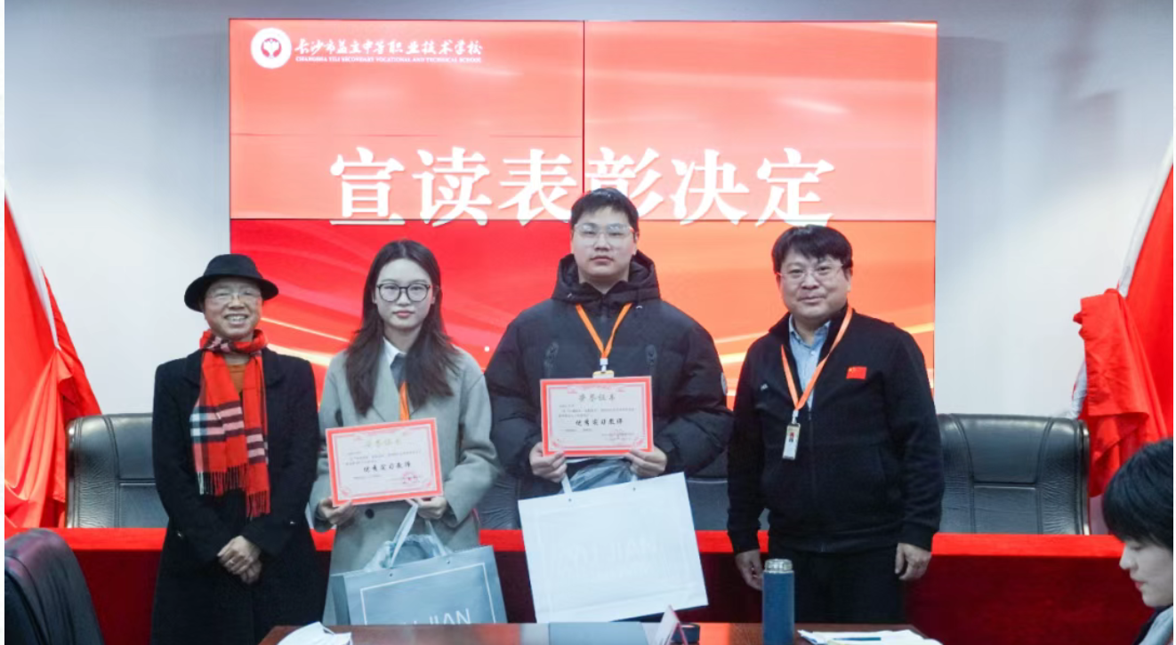 实习学校副校长康红艺老师宣读了《关于“优秀实习教师”的表彰决定》,赵徐虹、洪雅婷两位实习生因优秀的综合表现荣获益立学校实习队“优秀实习教师”的荣誉称号,实习学校还精心准备了十分有纪念意义的奖品,邓定华校长与付玉教授一起为两位同学颁奖。
