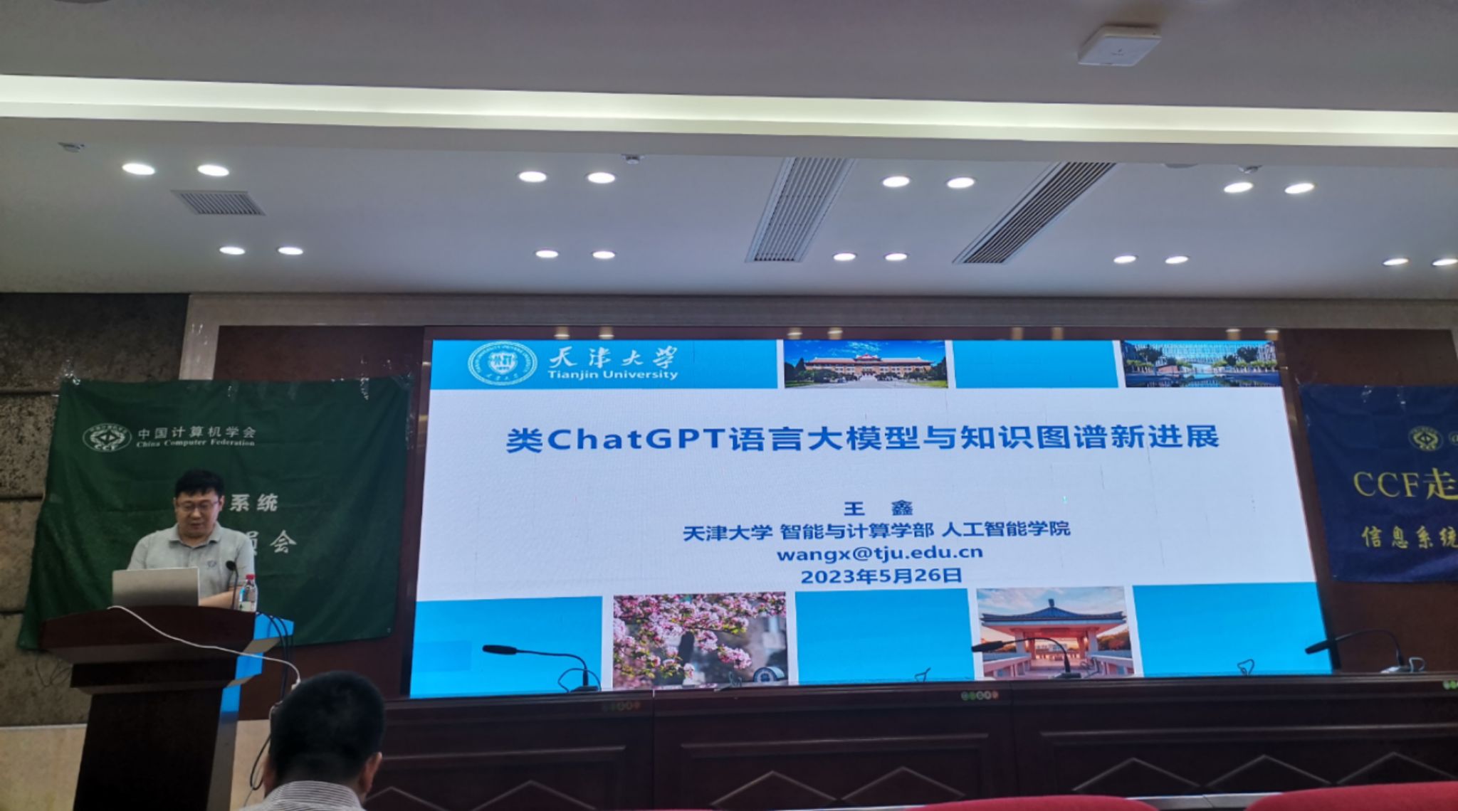 首先是天津大学王鑫教授,在报告中指出,以ChatGPT为代表的大语言模型正在人工智能的多个领域产生着深刻影响。随后,介绍了大语言模型与ChatGPT的工作原理;类ChatGPT大语言模型对于信息系统中人机交互模式的改变;知识图谱的基本方法、技术与应用。最后探究了类ChatGPT大语言模型与知识图谱相互作用而实现“神经+符号”结合的可能途径。王教授表示这种结合将为人工智能的发展带来更多的机遇与挑战。