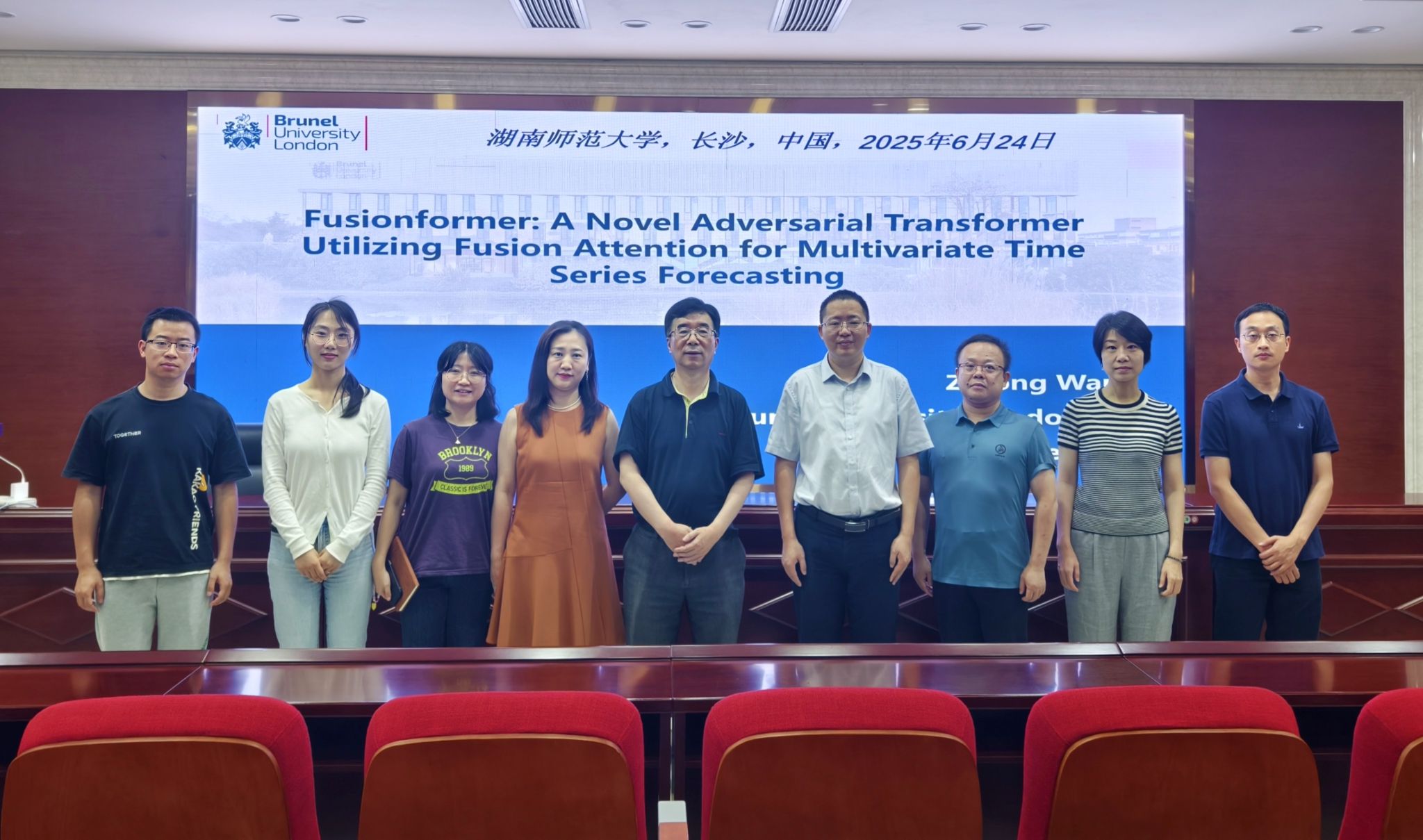 (通讯员:谢东霖 李姗姗)6月24日上午,应湖南师范大学信息科学与工程学院邀请,英国伦敦Brunel University讲席教授,欧洲科学院院士,欧洲科学与艺术院院士,王子栋教授进行了主题为“Adversarial Transformer for Multivariate Time Series Forecasting”的学术报告,本次报告由信息科学与工程学院肖林副院长主持,科研办组织召开,2024级研究生及相关老师参加。