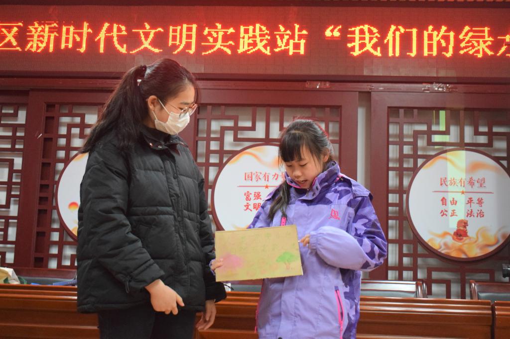小朋友与志愿者共同展示作品