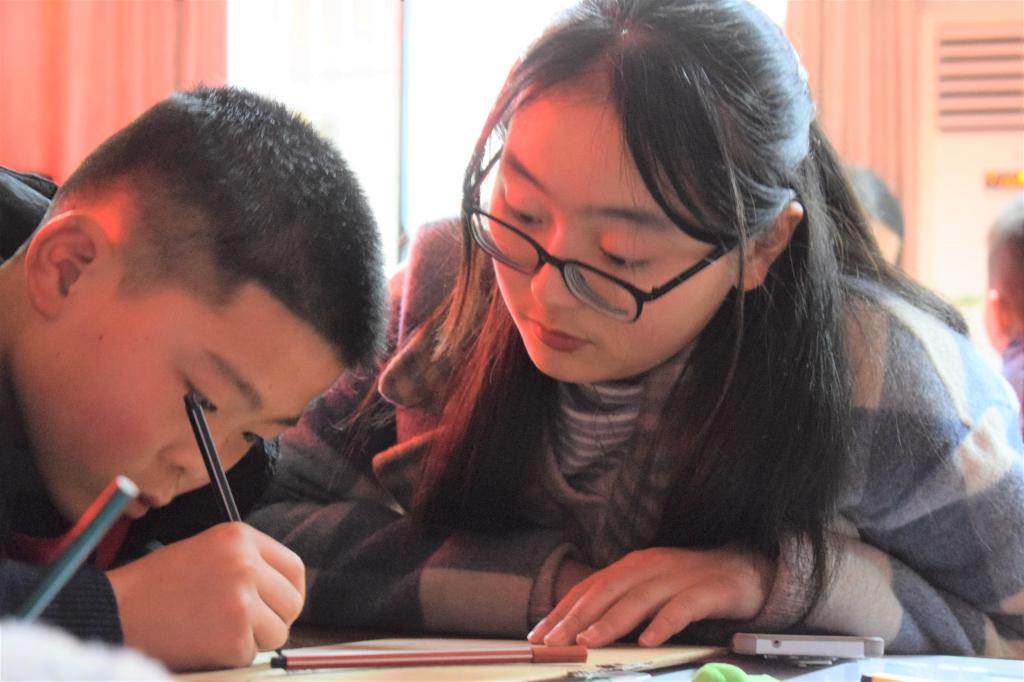 小朋友与志愿者合作创作