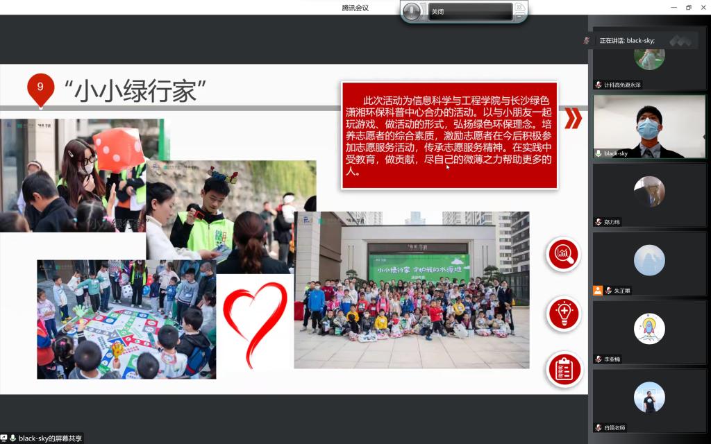 活动伊始,李亚楠讲述了志愿活动的意义和作用,在往期活动回顾中,“定向越野情,熠熠强国志”“小小绿行家”“遵规守纪,艺术共赏”等志愿活动的开展培养了志愿者的综合素质,诠释了志愿服务的内涵。此外,2021级、2022级各班开展的班级团支部志愿活动,通过多种形式弘扬了奉献自我的道德风尚。
