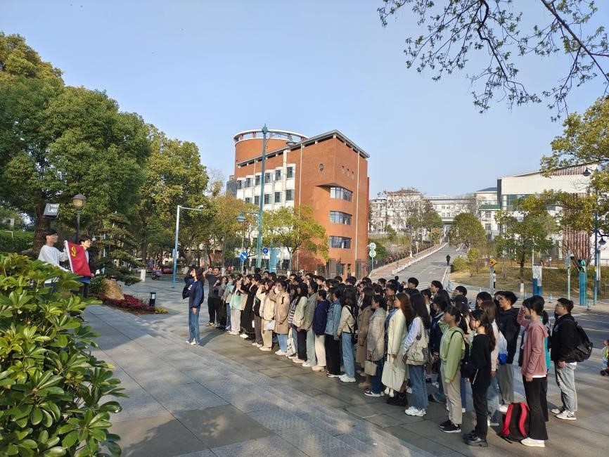 (通讯员 石姗姗)3月9日下午,为学习中国共产党第二十次全国代表大会精神,牢牢把握“奋进新征程 建功新时代”主旋律,进一步激励党员踔厉奋发、担当实干的精神。我院本科生计算机、人工智能党支部和本科生软件、通信、物联网党支部共同前往湖南师范大学校门前开展入党宣誓主题党日活动。支部全体成员参加此次活动。