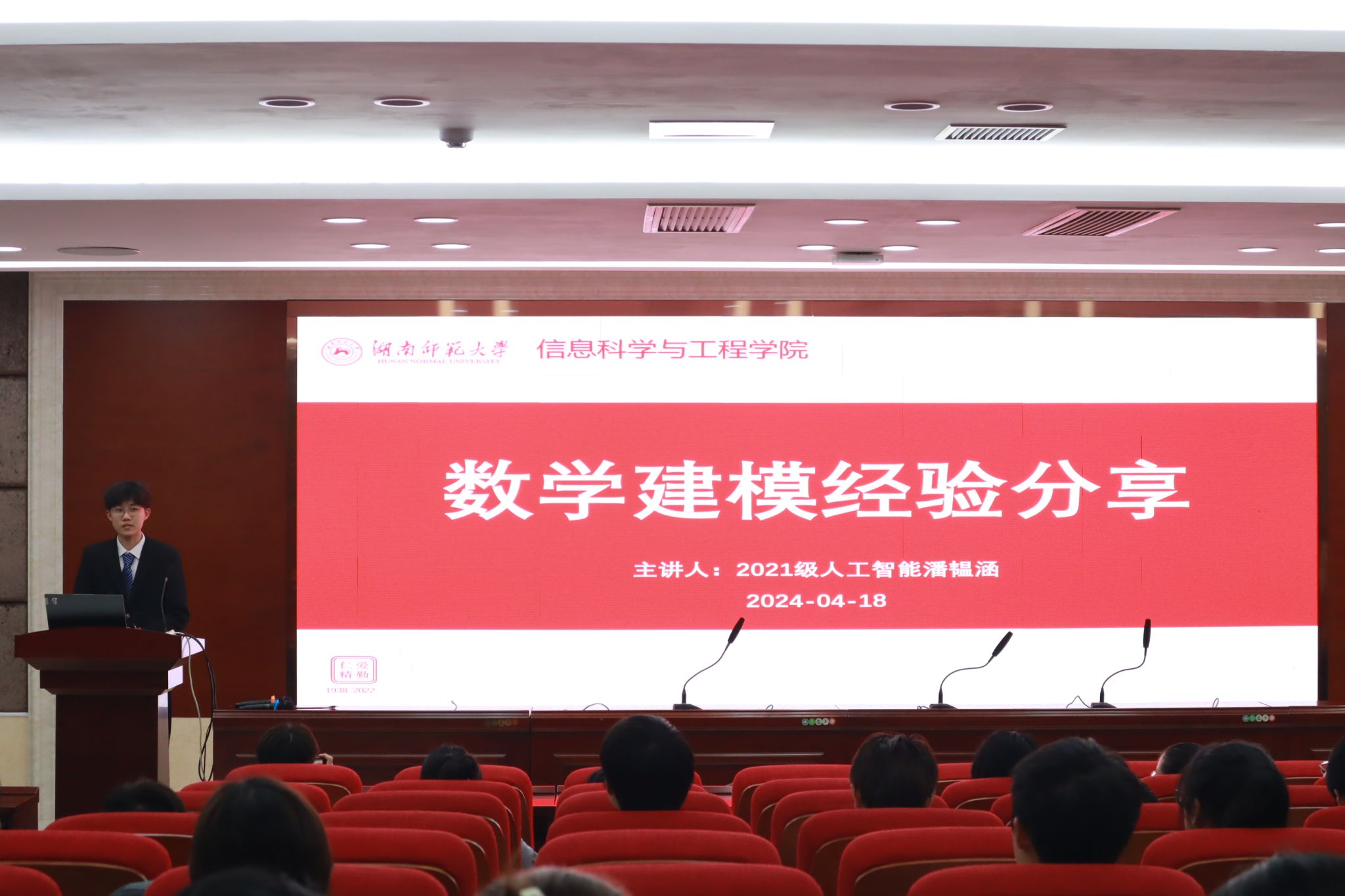 (通讯员 黄扬涵)为加深我院学子对数学建模竞赛相关知识的了解,4月18日晚,我院团委青创部于中和楼342报告厅开展“数学建模经验分享”精勤讲堂活动。此次活动由2021级人工智能专业潘韫涵担任主讲人,信息院部分学生参与讲座。