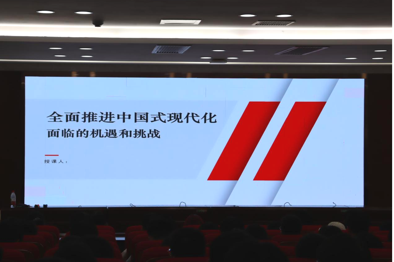 (通讯员 刘奕杉)6月13日下午,我院开展以“全面推进中国式现代化,面临的机遇和挑战”为主题的形势与政策课程。我院党委书记李常枫为同学们进行授课。