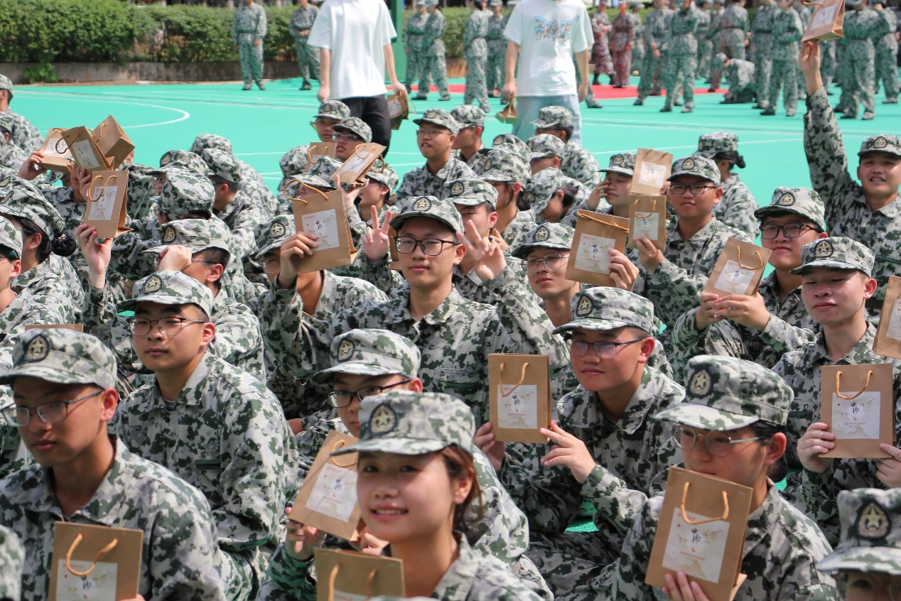 刘植在讲话中表示,经过多天的军训新生们的精神面貌已经焕然一新了,同时他勉励新生们要继续努力,勿骄勿躁,要严格执行教官的命令,并为大家送上了真挚的中秋祝福。随后,刘植及各班导为同学们送上了饱含真意的月饼,承载着学校对新生的关爱与问切,缓解了同学们的思念之情,同时深厚了彼此间的友谊。