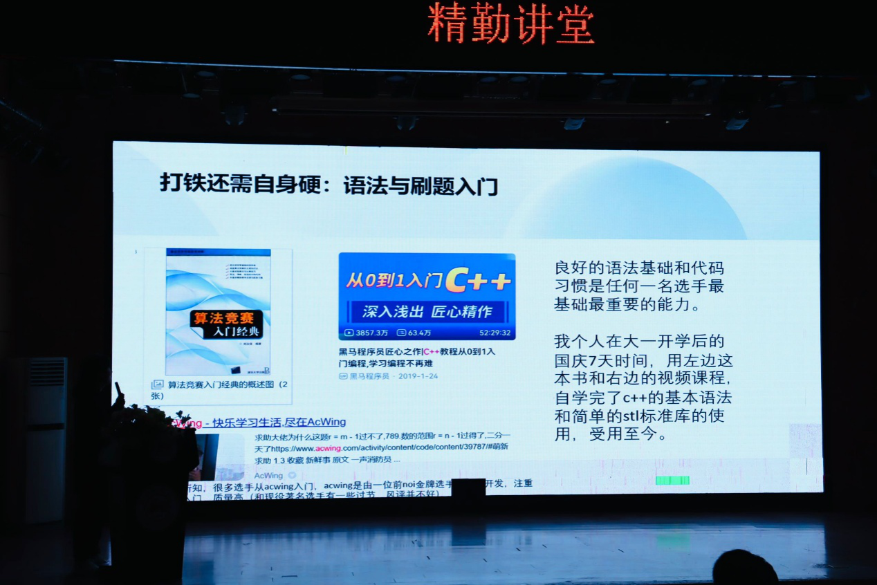 此次精勤讲堂旨在让同学们对程序设计竞赛有一定的认识,积累程序设计竞赛经验,提高实践创新能力与素养,为以后参加程序设计竞赛奠定良好基础。