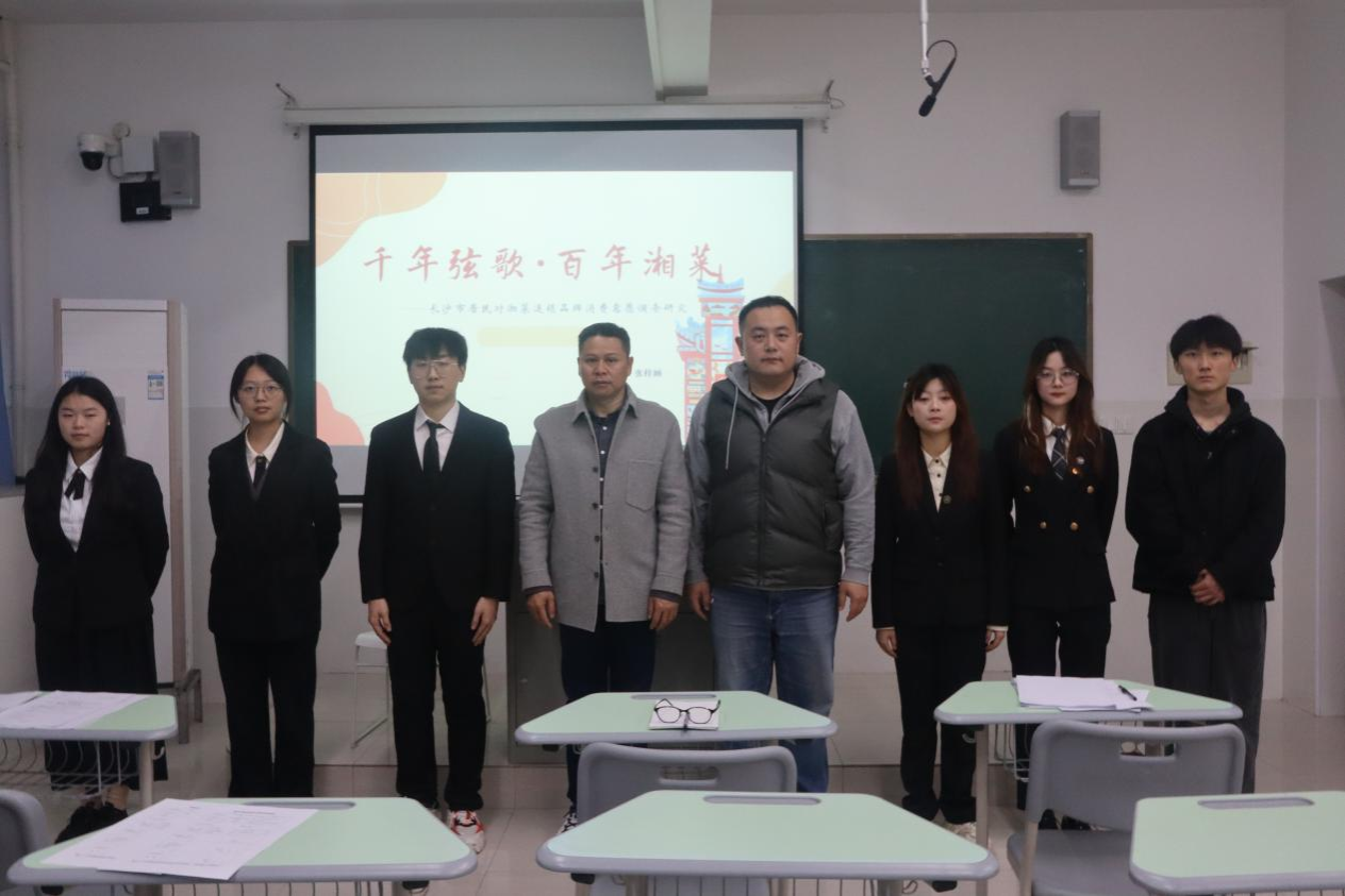 比赛开始,队伍展示了“千年弦歌·百年湘菜”项目,并围绕项目背景、项目介绍、营销策略、财务规划等方面进行了具体阐述。基于长沙市居民对湘菜连锁品牌消费意愿调查研究,队伍分析了湘菜连锁品牌消费形式现状以及湘菜连锁品牌购买意愿的影响因素,表示餐饮服务应该基于消费者角度提供的意见,提升体验与可持续创新。