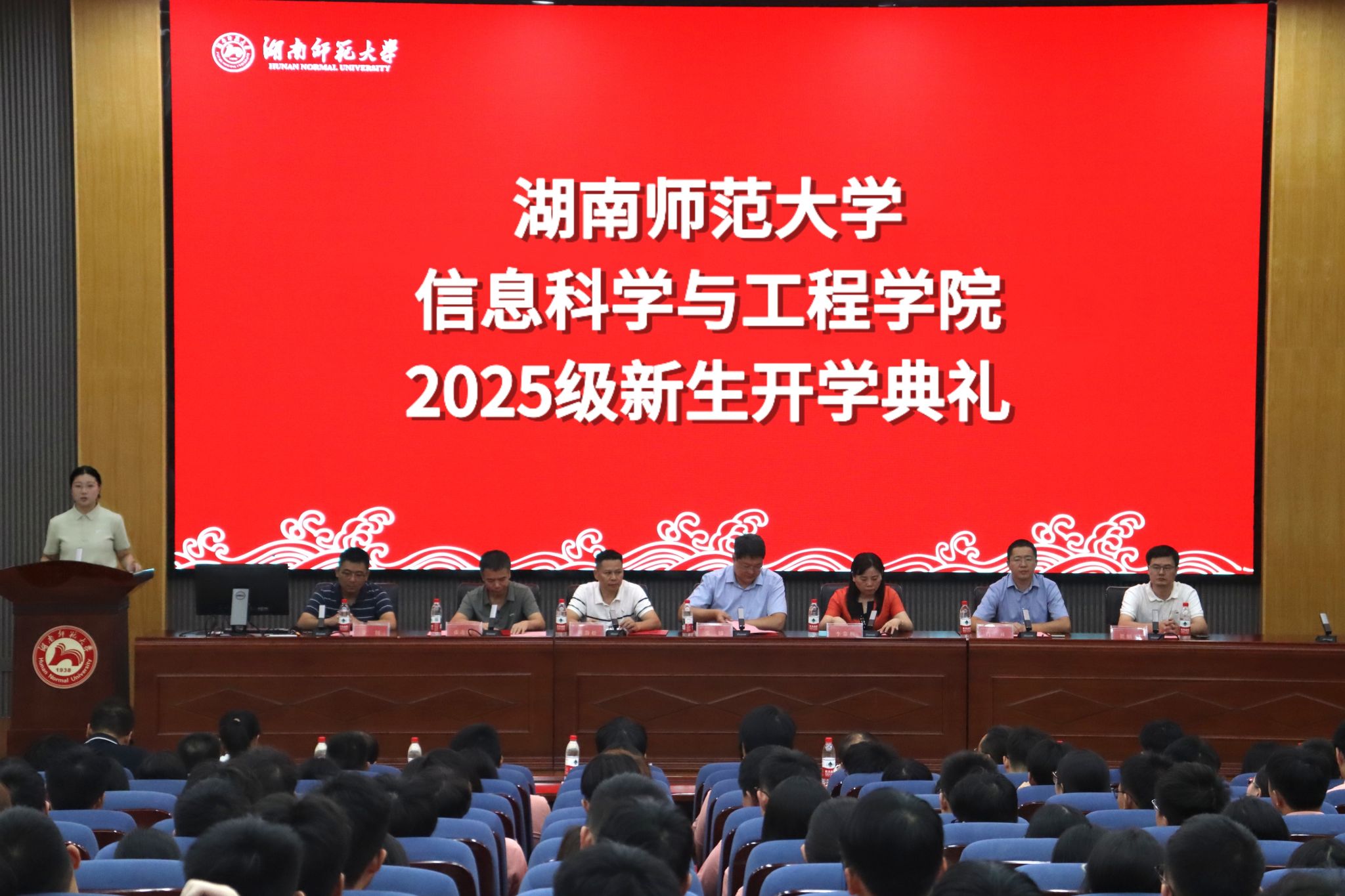 (通讯员 李丰耘 黄雨婷 方诗语)9月15日晚上,信息科学与工程学院(以下简称“信息院”)在体育学院报告厅隆重举行2025级新生开学典礼。此次开学典礼由2025级新生辅导员刘颖主持。