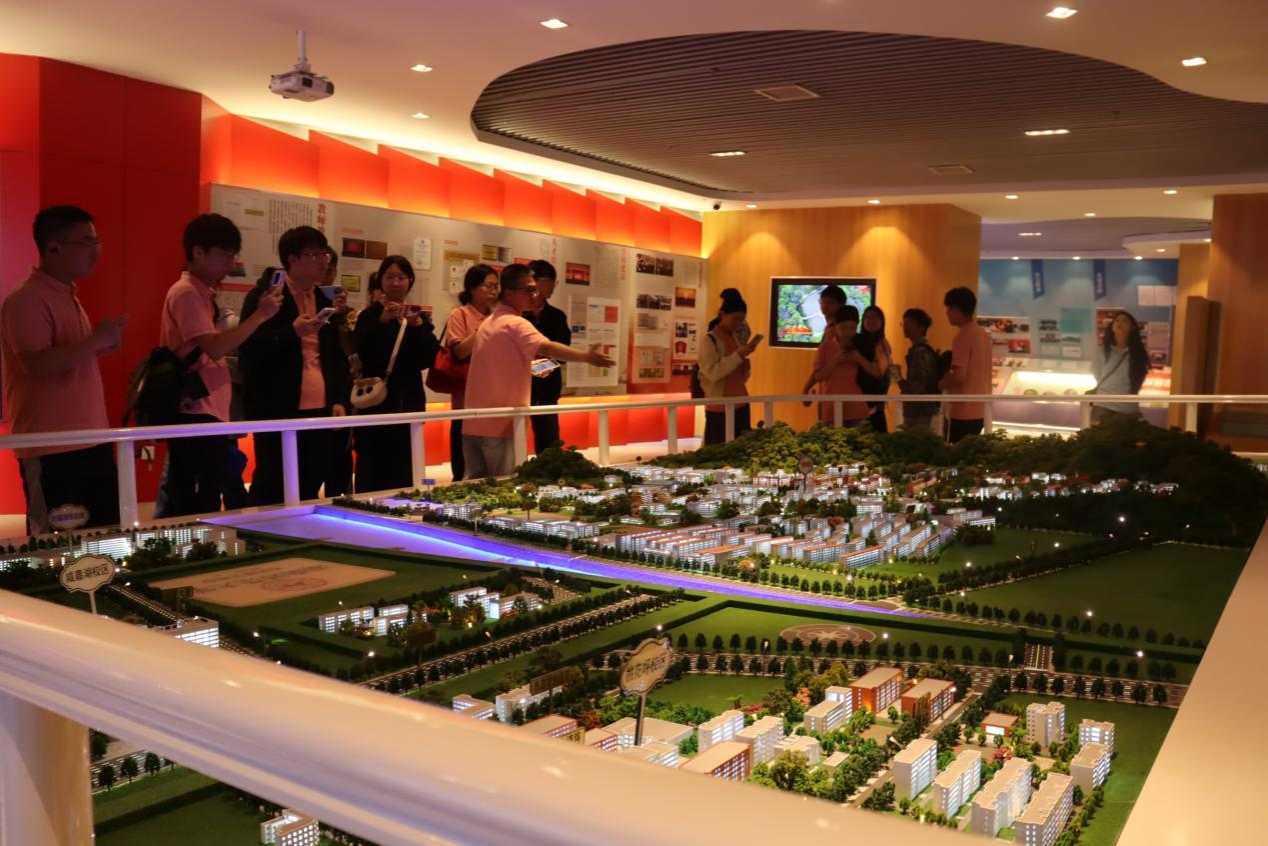 新生们参观学校模型
