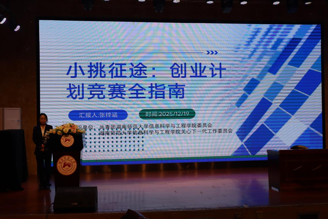 (通讯员 尹子涵)为增进我院学子对“挑战杯”全国大学生系列科技学术竞赛的了解,激发同学们的创新热情,12月19日晚,我院于树达楼113报告厅举办“挑战杯”竞赛主题宣讲会。2023级软件工程班张梓涵担任主讲人,围绕赛事解读、经验分享与备赛建议等内容展开宣讲。
